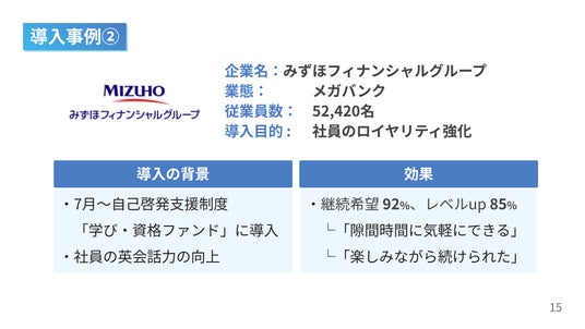 導入背景としては、英語人材の育成もさることながら、社員の主体的なキャリア形成・スキル強化を後押しする自己啓発支援・モチベーション向上施策と捉える事例も相次いでおり、今後も人的資本経営の広がりとともにスピークバディの導入企業は増加していく見通しです。