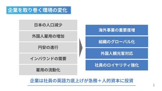 <社会背景:人口減や円安などの外部環境の変化で高まる英語ニーズ>
