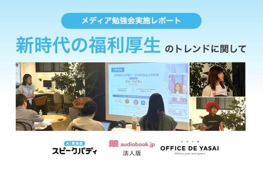 AI英会話アプリ「スピークバディ」の開発・運営を行う株式会社スピークバディ(本社:東京都中央区、代表取締役社長:立石剛史、以下「当社」)は、株式会社オトバンク、株式会社KOMPEITOと3社合同で、「人を惹きつける会社の福利厚生とは?新時代の福利厚生トレンドに関するメディア勉強会」を開催しました。
