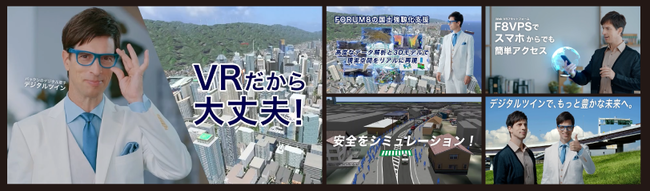 これまでには、2020年のスイートシリーズ、ゲームプログラミングPC・スイート会計・安全運転シミュレータ・UC-win/Roadを紹介する4篇に始まり、2021年6月の「社長と秘書」篇と「カフェで注文」篇、2022年2月の「つながりは自由に描ける」篇、「道」篇が放映されました。今回、「メタバースをもっと身近に」篇ではデジタルでつながりDXを推進するWebVRプラットフォームF8VPSを、「デジタルツインでもっと豊かに」篇ではパックンの「デジタル双子」が登場し、社会の安心安全や快適な生活を実現するVRCGソリューションを紹介します。
