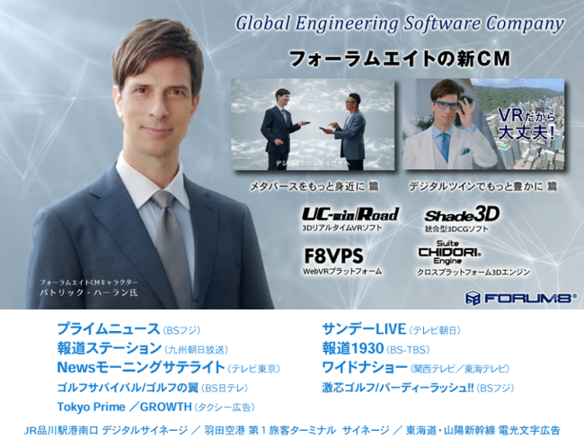 株式会社フォーラムエイト(本社:東京都港区港南2-15-1、社長:伊藤裕二、URL:https://www.forum8.co.jp)は、2022年10月より、パックン(パトリック・ハーラン氏)出演の新テレビCMを各局で放映開始いたしました。2篇のエピソードを通して、パックンがデジタルツイン、メタバースを実現するフォーラムエイトのVRCGソリューションとWebVRプラットフォームF8VPSを紹介します。