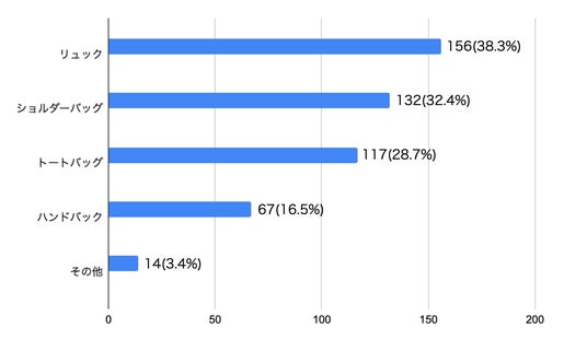 アンケートの集計結果から、ビジネス用のバッグ使用率はリュックが最も多く38.2%。