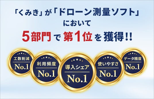 株式会社スカイマティクス(東京都中央区、代表取締役社長:渡邉善太郎)は、2024年6月に株式会社インテージが実施したドローン測量ソフトに関するインターネット調査で当社のクラウド型ドローン測量サービス「くみき」が導入シェアNo.1をはじめとして、5つの項目でNo.1を獲得しました。