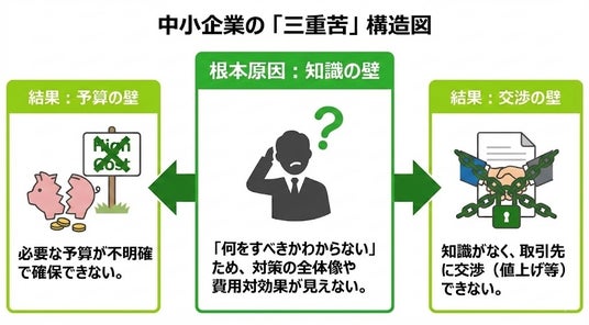 なぜ中小企業は対策できないのか。その背景には「予算」「交渉」「知識」という3つの壁が存在します。