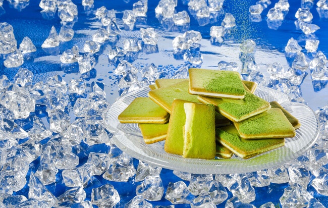 宇治抹茶とイタリア産ホワイトチョコレートを練り込んだガレット生地の中に宇治抹茶クリームを入れ焼き上げ、ホワイトチョコでコーティングしました。