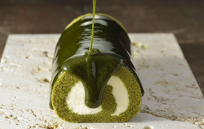 抹茶入のふわふわスポンジでなめらかなチーズクリームを優しく巻きました。 周りを抹茶のジュレで包み込み、全体の味を引き締めます。 ほろ苦さと濃厚なコクが味わえるロールケーキです。
