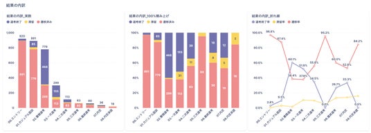 表やグラフでの直感的な可視化と、網羅的な集計軸により、必要なデータをすばやく正確に把握