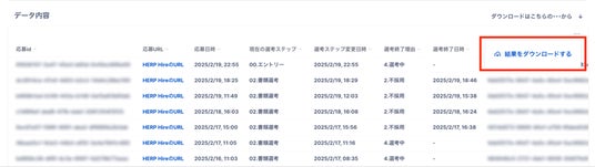 『HERP Hire』上の各種データを任意のフィルタ条件で絞り込み、ダウンロードできます。これにより、集計に必要なデータのみを抽出することが可能です。