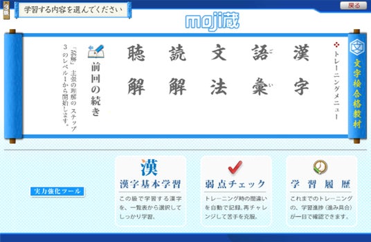 【コンテンツ3】 実用日本語文字力検定(R)(文字検(R))の対策教材『moji蔵』