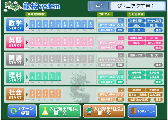 【コンテンツ1】 主要5教科に対応!公立高校入試対策『龍桜system』