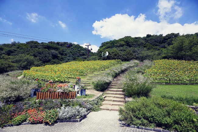 標高400メートルの山上に位置し、港町神戸の街並みが一望できるリゾート施設「神戸布引ハーブ園/ロープウェイ」(運営:神戸リゾートサービス株式会社)は、「GARDEN FEST 2022 -Summer-」を2022年7月16日(土)~8月31日(水)まで開催します。夏の風物詩「ひまわり畑」や夏色いっぱいのガーデン、親子で遊べる「わんぱくパーク」や「宝さがし企画」などイベントも盛りだくさんです。夏は全日ナイター営業を実施。神戸の夜景、イルミネーション企画「光の森」の幻想的空間が誕生。そしてその空間で夜景を眺め過ごす「神戸ガーデンテラスバー」が期間限定でオープンします。ハーブ園産ミント(ペパーミント)をふんだんに使った名物「布引モヒート」も登場します。