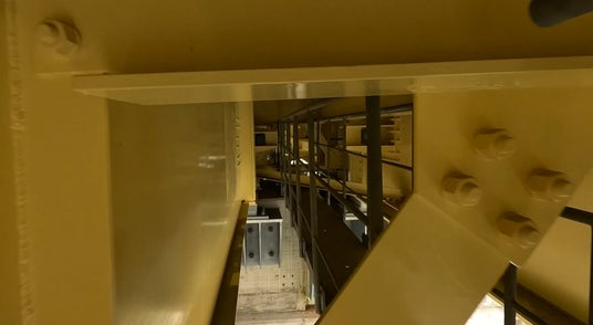 Rangle micro2の飛行中のカメラ映像から抜粋。橋梁下方から飛行開始し、骨組みの中を通過しながらの撮影を行った。