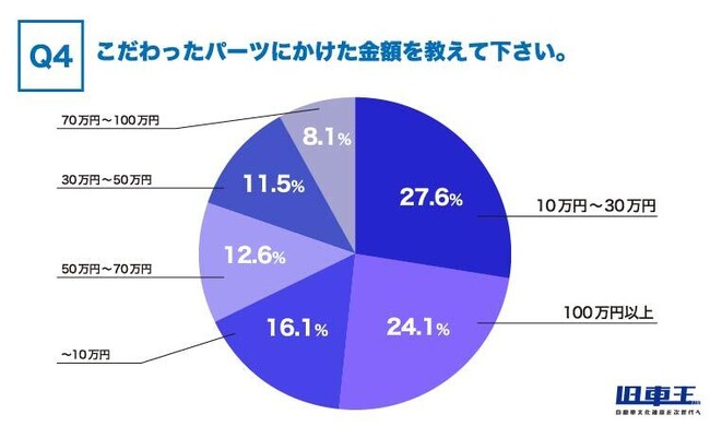 こだわったパーツにかけた金額は、10万円以下から100万円以上まで幅広く分布している。