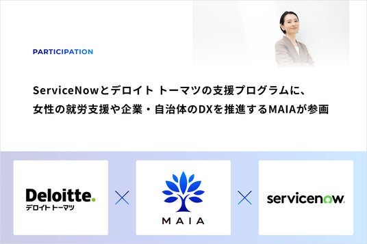 ServiceNow Japan合同会社(本社:東京都港区、執行役員社長:鈴木 正敏 以下、ServiceNow Japan)とデロイト トーマツ グループのデロイト トーマツ コンサルティング合同会社(本社:東京都千代田区、代表執行役:神山 友佑、以下、デロイト トーマツ)が展開している、テクノロジー業界へのキャリアチェンジを目指す女性を対象とする包括的な支援プログラム「NextGen Program for Woman」に株式会社MAIA(本社:東京都港区、代表取締役:月田 有香、以下、MAIA)が2024年7月に参画したことを発表します。