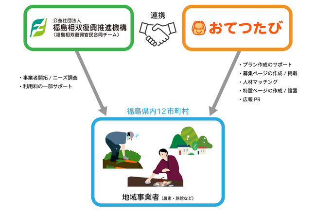 季節的・短期的に人手不足な事業者と地域に関心のある人々のマッチングサイト『おてつたび』を運営する株式会社おてつたび(本社:東京都渋谷区、代表取締役CEO:永岡里菜、以下「おてつたび」)は、公益社団法人福島相双復興推進機構と連携し、福島県12市町村における「お手伝い」を通じた関係人口(※)の拡大に向けて、人材マッチング実証事業を開始しました。