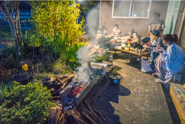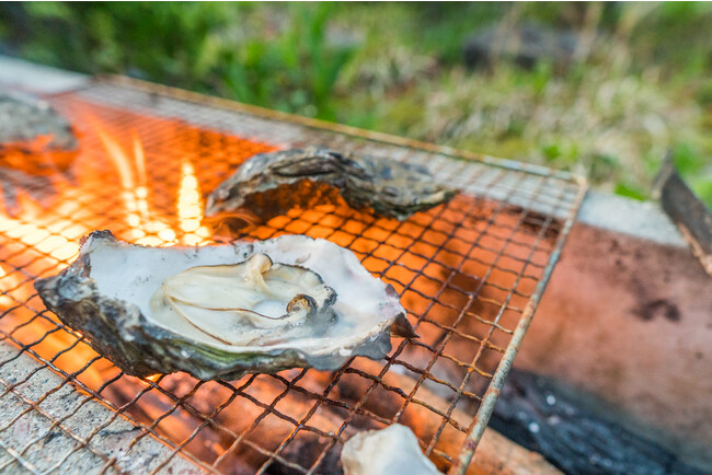 車中泊スポット到着後、利用者は地元漁師「河端水産」から殻付き牡蠣を受け取り、シェアハウス内のバーベキューコーナーやシェアキッチンを利用して、自身で焼く・蒸すなどして牡蠣を調理・堪能することができます。