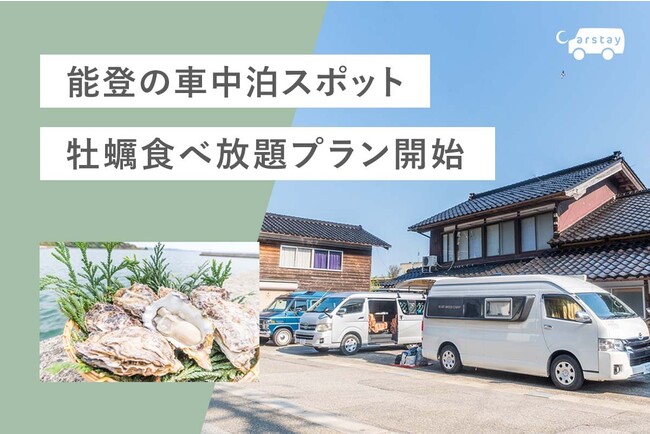 国内最大級のキャンピングカーレンタル・カーシェアと車中泊スポットなどバンライフ※の予約プラットフォーム事業を展開するCarstay(カーステイ)株式会社(本社:神奈川県横浜市、代表取締役:宮下 晃樹(みやした こうき))と、長期滞在も可能な車中泊スポット“住める駐車場”を併設する田舎体験シェアハウス「田舎バックパッカーハウス」(所在地: 石川県鳳珠郡穴水町、代表: 中川生馬)は、穴水町で育てられた牡蠣の旬の時期に合わせて、同車中泊スポット利用者向けに、地元漁師と連携し、期間限定で「能登牡蠣(のとかき)食べ放題プラン」を実施します。期間は4月8日(土)から6月上旬の真牡蠣の旬が終了するまで。