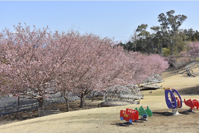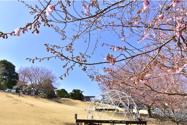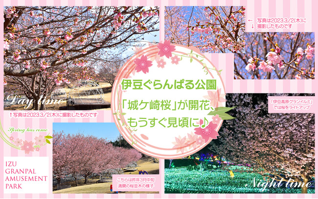伊豆ぐらんぱる公園では、2004年に植栽した早咲きのご当地桜「城ケ崎桜」が開花し、現在は一分咲きとなっております。