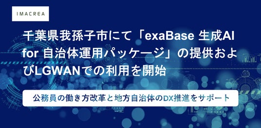 株式会社イマクリエ(本社:東京都港区、代表取締役:鈴木信吾、以下、当社)は、千葉県我孫子市に「exaBase 生成AI for 自治体運用パッケージ」の提供を開始したことをお知らせします。