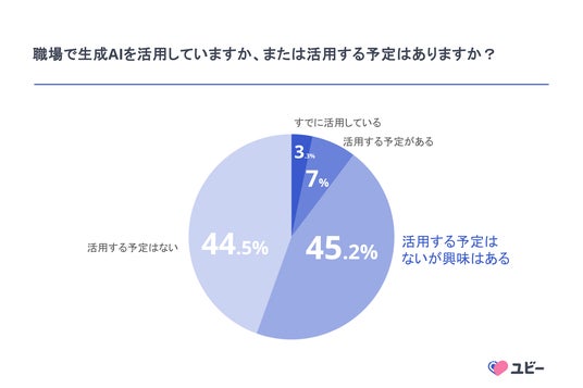 ・業務で生成AIを「活用する予定がある」「活用する予定はないが興味がある」が5割以上にのぼる