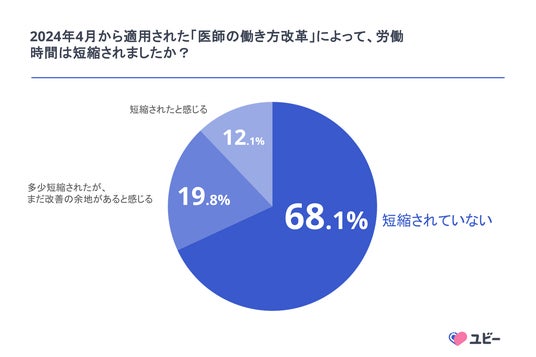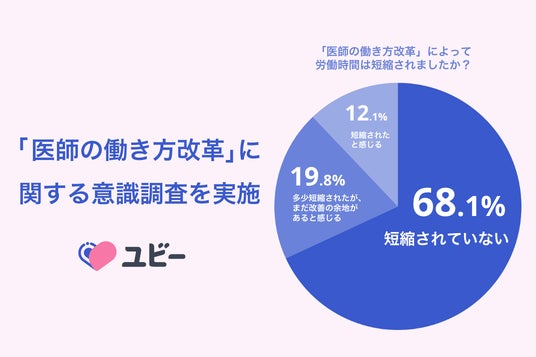 Ubie株式会社(本社:東京都中央区、共同代表取締役:阿部吉倫・久保恒太、以下「Ubie」)は、2024年4月に施行された「医師の働き方改革」から約半年が経過したことを受け、全国の病院勤務医師を対象に「医師の働き方改革に関する意識調査」を実施しました。調査の結果、約7割の医師が労働時間短縮を実感していないことが浮き彫りとなり、医師の働き方改革が進行していない実態が判明しました。
