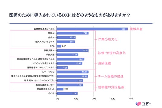 ・医師のためのDXで最も導入されているのは医療情報連携システムの38.6%、それ以外のDXツールの導入は20%未満にとどまる