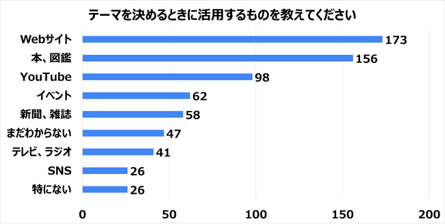 自由研究は、テーマ探しから始まります。調査では「テーマを決めるときに活用するもの」も聞きました。