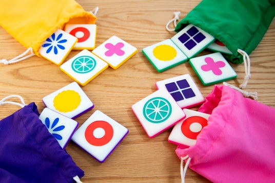 ◆内容物:ゲームタイル36枚/お題カード30枚/得点チップ15枚/布袋6枚/遊び方説明書
