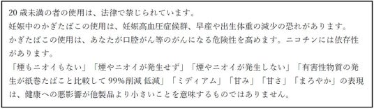 BATグループでは、たばこ製品のマーケティングを適切に実施するために国際的な自主規準を設定しています。そのため消費者に対するたばこ製品に関するすべてのコミュニケーションには、20歳未満の方へのコミュニケーションをお控えいただくとともに、「喫煙と健康に関する注意文言」を表示することを関係各位にお願いしております。オーラルたばこに関しては、記事掲載していただく際には、「健康に関する注意文言」が表示されるようご配慮いただきたく存じます。ご協力の程、何卒よろしくお願い申し上げます。