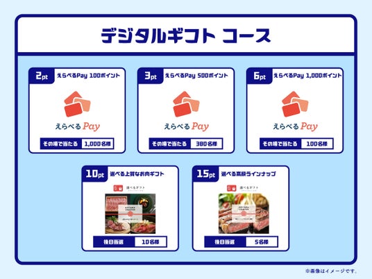 貯まったポイント数に応じて好きなコースの賞品にエントリー可能です!