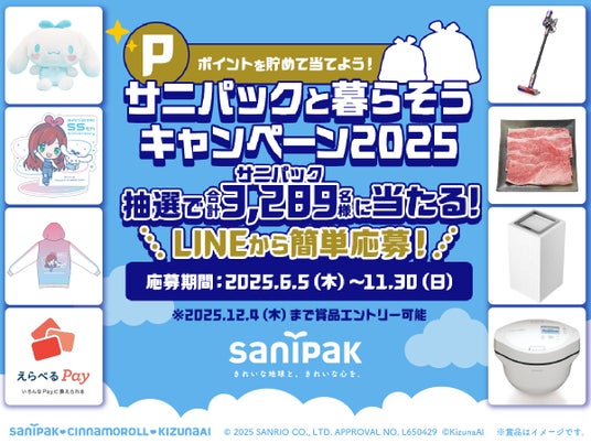 日本サニパック株式会社(本社:東京都渋谷区、代表取締役社長:井上充治、以下 サニパック)は、2025年6月5日(木曜)から11月30日(日曜)までの期間、LINEアカウントから参加できる「サニパックと暮らそうキャンペーン2025」を実施します。
