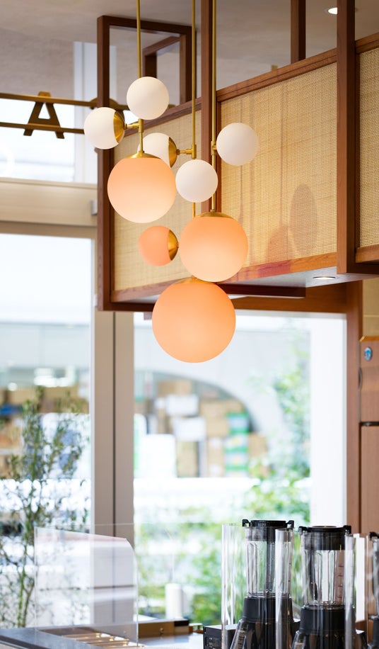 また、販売期間中は柑橘をイメージした店内装飾へ移り変わります。一果房のシンボルとなる店内数か所にちりばめられたフラッグや、店内に飾られた果実を連想させる丸形照明が“柑橘色”に変化し、店内装飾からも季節の移ろいをお楽しみいただけます。