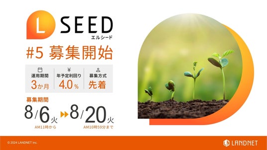 URL:https://lseed.landnet.co.jp/fund/d096e92e-db79-407d-a0b9-7f83cdcd8d1b?utm_source=lseed&utm_medium=banner&utm_campaign=lseed_5-prtimes
