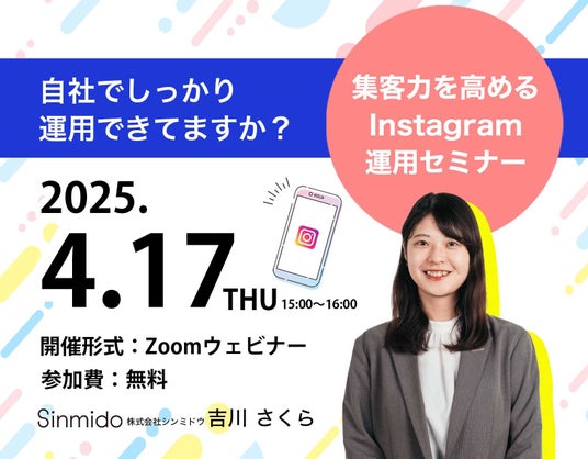 株式会社シンミドウ(本社:埼玉県さいたま市)は、Instagramで実現する集客ブランディングについて無料ウェビナーを開催します。