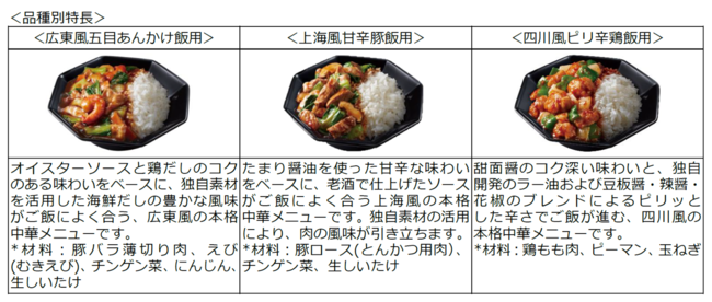 「Cook Do(R) 今夜は中華飯」は、3品種いずれも厳選した本格的な中華調味料・香辛料等を絶妙に配合した本格的なおいしさを楽しんでいただけます。中国本場のメニューや調味料の使い方を参考に、日本の食卓に合う“ご飯にかけるメニュー”を開発し、当社独自素材・独自開発原料を活用することで、ご飯にかけて食べるのに最適な餡のとろみ・絶妙な色合い・味わいを追求しました。昨今注目されている“お米”を、肉や野菜などの様々な食材と共に、本格中華のご飯ものメニューとして手軽においしく楽しむことのできる製品です。