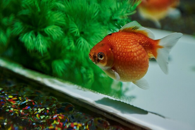 琉金の仲間で、名前の通りピンポン玉のようなまん丸フォルムと、表面が真珠のように盛り上がったパール鱗が特徴。一生懸命に泳ぐ愛らしい姿に癒される人も多い、大人気の種類です。