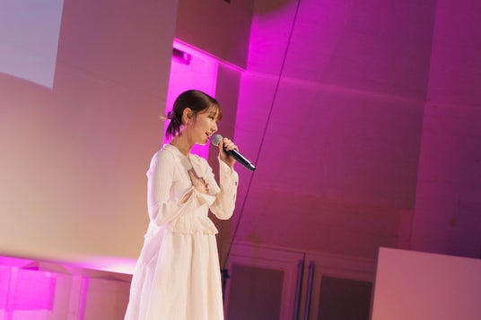 この日、柏木さんのテンションがもっとも上がったナンバーは、幼い頃から歌い込んでいるという自身お気に入りの1曲。「カラオケで絶対歌う」というだけに、堂々とした歌唱で、会場の全員が真剣に耳を傾けます。