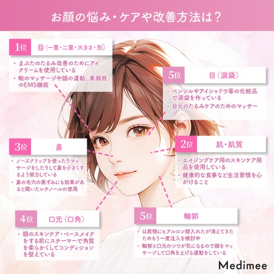 株式会社FoR/FoRINC.(本社:東京都渋谷区、代表取締役社長:高橋知暉)は、「美容クリニックをもっと身近に」をビジョンに掲げるサイト「Medimee」にて、美容医療に関する情報を発信しています。今回は、20~50代の男女を対象に、「顔の悩み」に関するアンケート調査を実施しました(Medimee調べ)。以下はその結果です。