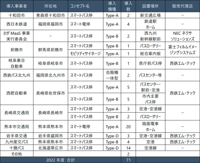 株式会社YE DIGITAL(本社:北九州市小倉北区 代表取締役社長:玉井裕治 以下、YEデジタル)が提供する「スマートバス停」など※は、2022年度にサービス提供数が前年同期比で200%増の71を突破し、累計提供数は168となりました。