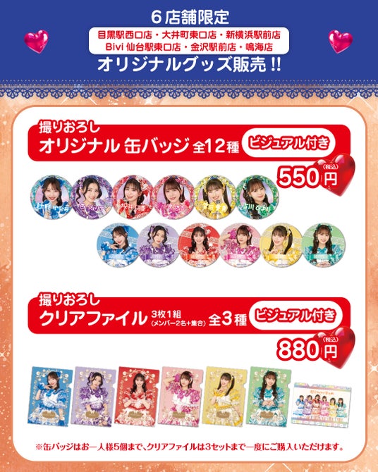 コラボルームを展開している6店舗でグッズを販売いたします。グッズは「缶バッジ」と「クリアファイル」で、すべてコート・ダジュール限定撮りおろし素材を使った商品です。各店数量限定販売です。
