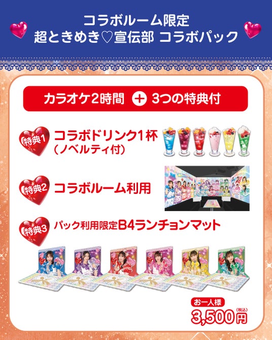 内容:コラボルーム利用2時間、コラボドリンク1杯(ノベルティ付き)、コラボパック利用限定「B4ポップアップランチョンマット」1枚