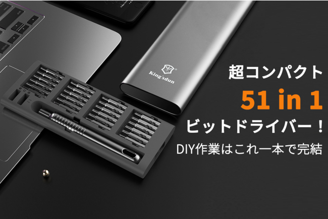 ※「51in1」とはドライバー本体、48種類のビット、着磁器、脱磁器の合計51個の部品が一つのケースに収められているということです。