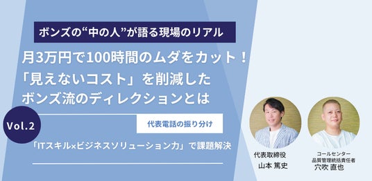 電話代行サービスを提供する株式会社ボンズコミュニケーション(本社:神奈川県横浜市、代表取締役:山本篤史)は、代表電話の振り分けを仕組み化し、月100時間相当の業務負担を削減した事例を公開しました。