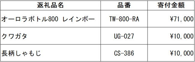 ●スノーピークの「オーロラボトル800 レインボー」など3品目を新規返礼品として採用。楽天ふるさと納税、ふるさとチョイス、ふるなび、さとふるへ4月14日(金)20:00に出品