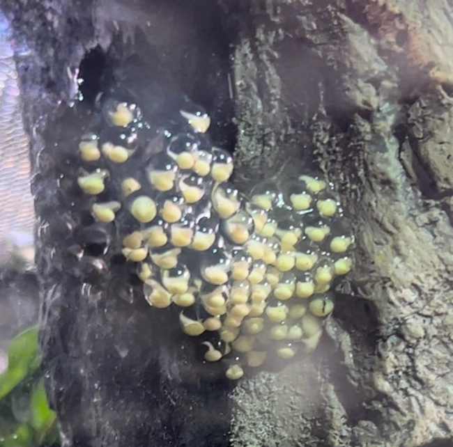 になり、6月下旬に水槽内の壁にゼリー状の卵が確認されました。