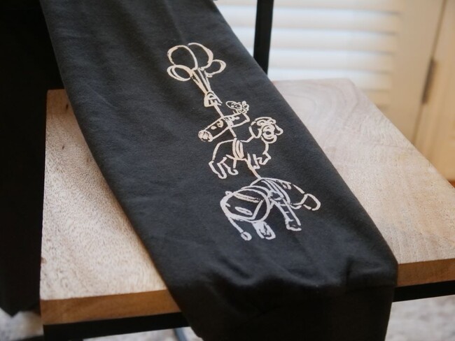 昨年の単独イベント『えばそんの広場LIVE~えばそん…遂に家を出る~』にて、遂に命名された『タマ(ちょっと首の長い犬)』を、ちょっぴり不気味なタッチでプリントしたロングTシャツがアパレルグッズとして登場!