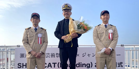 神戸-小豆島-高松を結ぶジャンボフェリー株式会社(本社:神戸市、代表取締役社長:山神正義)は、2025年04月16日の07時15分から、神戸港に停泊するフェリー「あおい」船上にて、『瀬戸内国際芸術祭2025 / ジャンボフェリー SHIP’S CAT(Boarding)お披露目式』を開催いたしました。