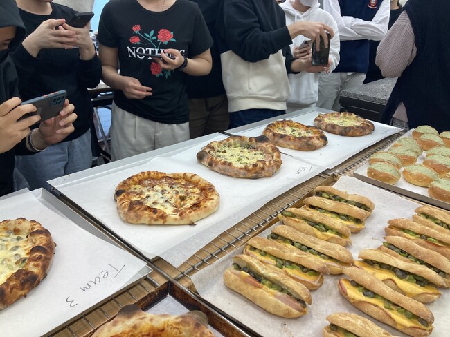 2023年1月17日、ピュラトスジャパン株式会社のご協力を頂き、同社大阪イノベーションセンターを訪問し、学生たち考案のレシピを元に製パン実習を行いました。