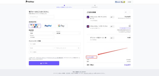 クーポンの適用: 決済情報の入力画面にある「クーポンコード」欄に貼り付け、適用ボタンを押すことで割引価格が反映されます。