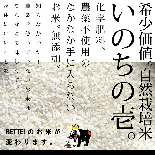 いろんなご縁がつながり、偶然な出逢いと共感が相まって、今回『自然栽培米いのちの壱』をBETTEIのお米に使わせてもらえることになりました。